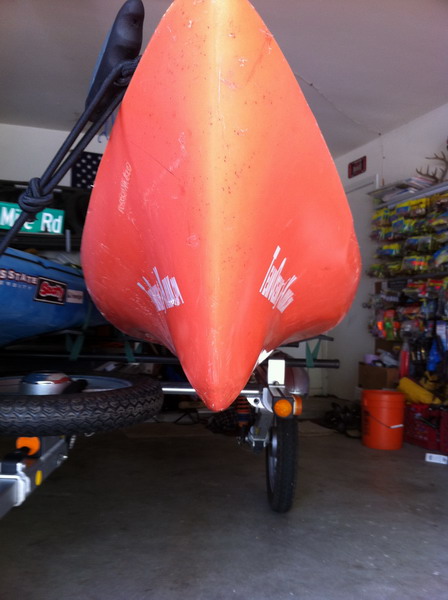 Earlier this year Sam and I were in a bad accident on the freeway where someone hit my trailer. The wreck blew off one of the tires, bent the tongue, and trashed one of Ocean Kayak Prowler 13 kayaks.